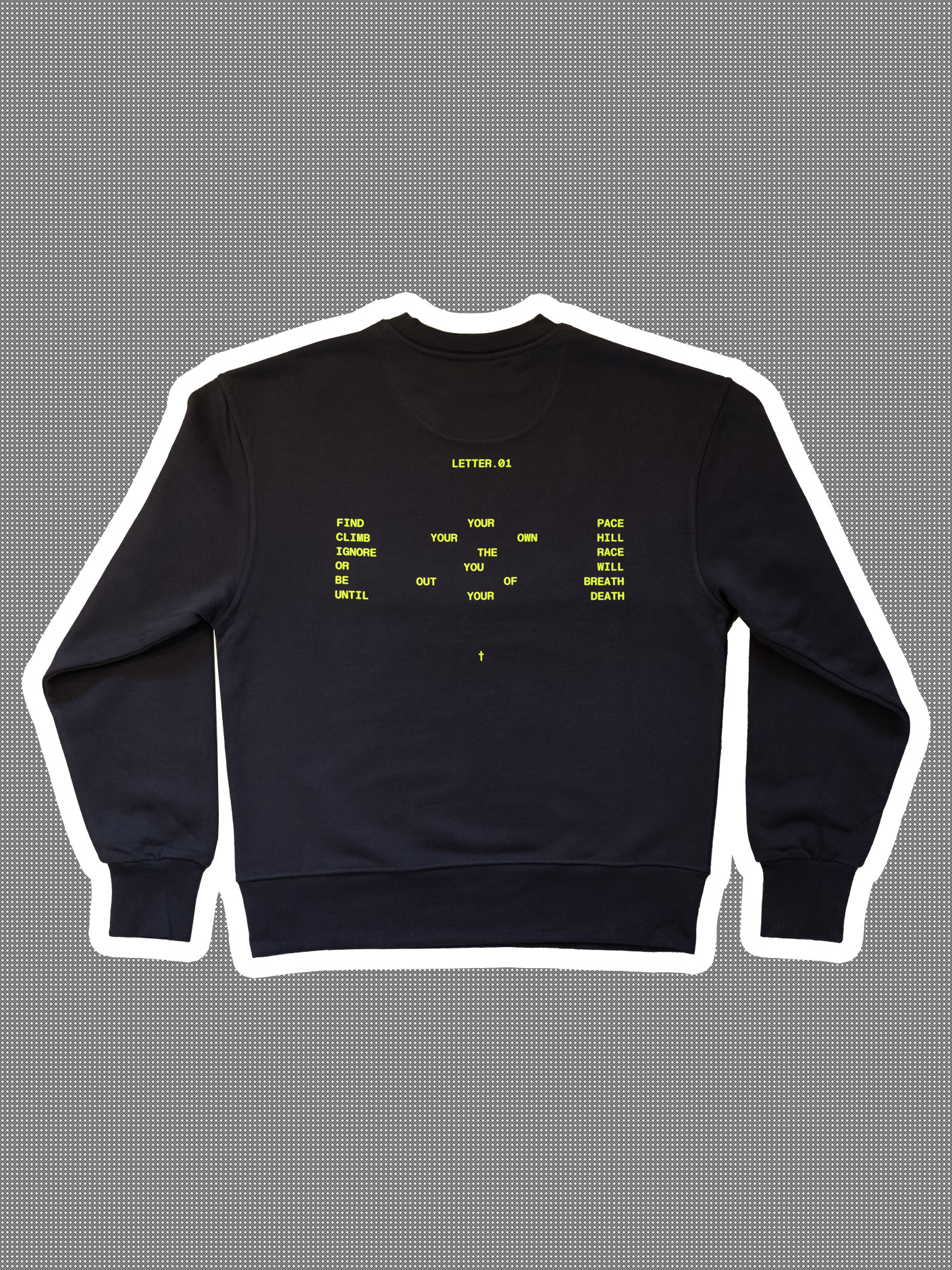 This is a grey, oversized sweatshirt with neon print.Anti performance performance wear